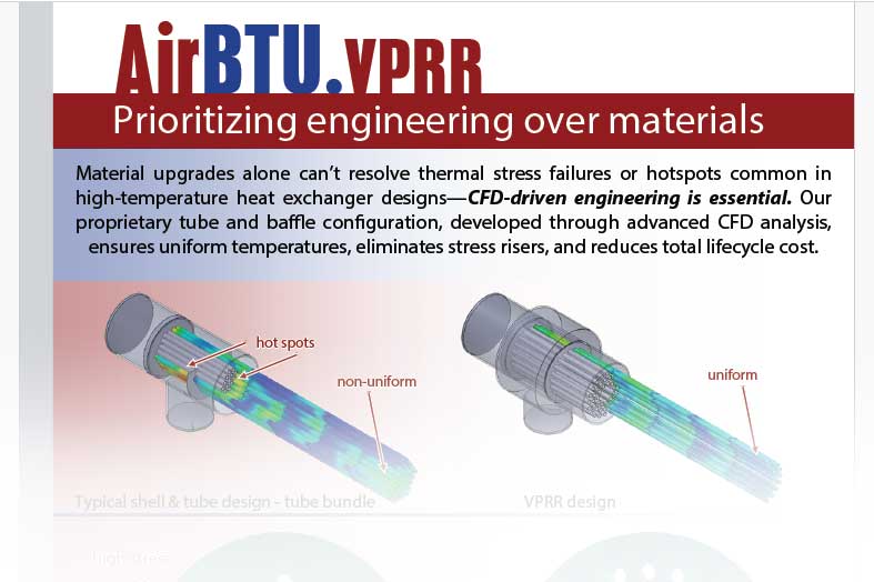The full AirBTU VPRR technical bulletin expands on these concepts with detailed CFD analysis and engineering data focused on uniformity, stress reduction, and lifecycle performance.
